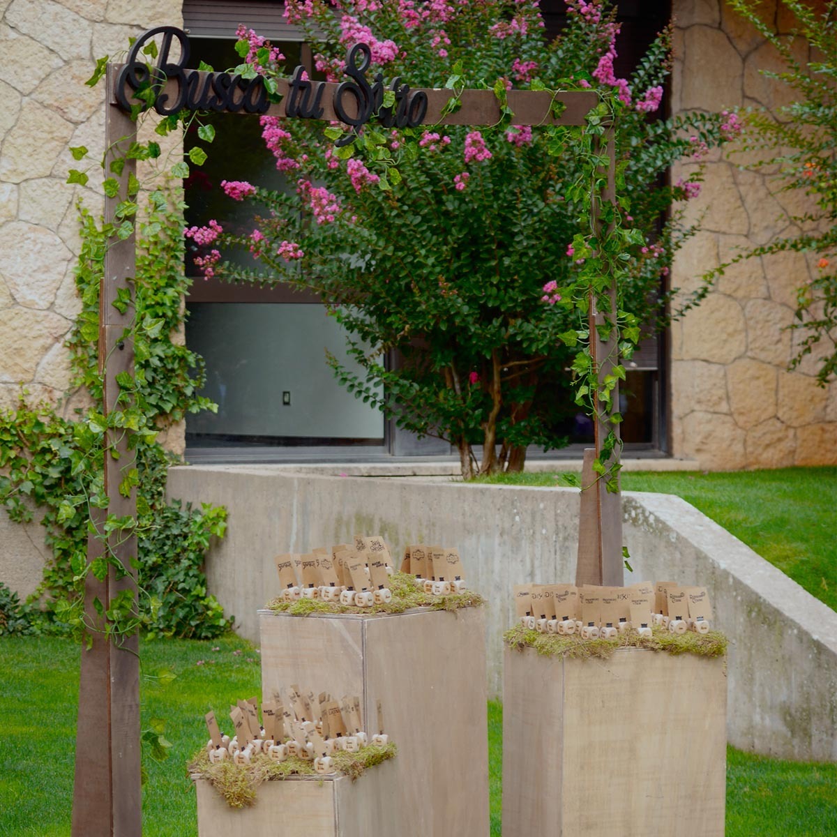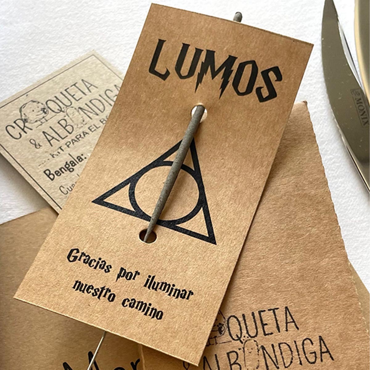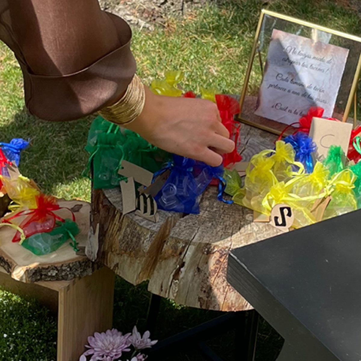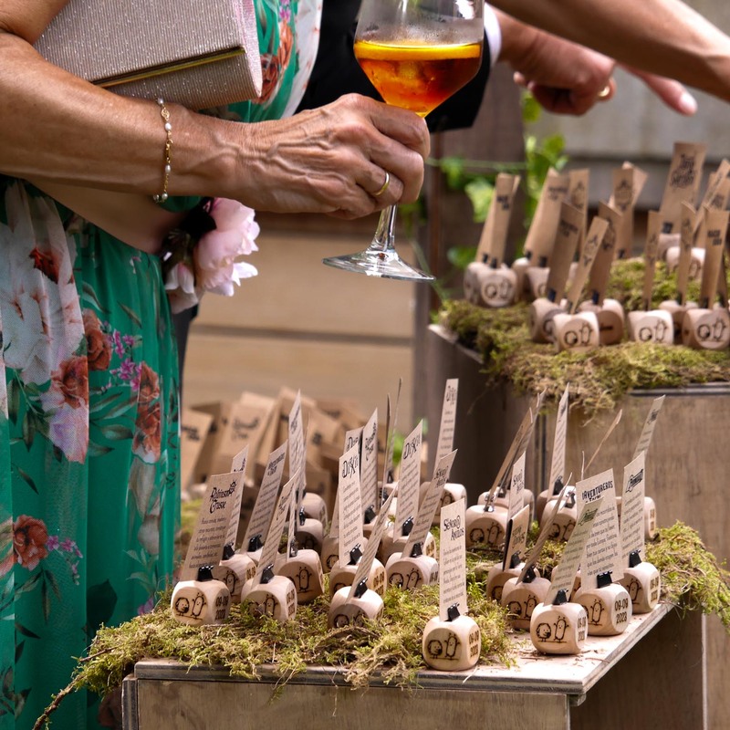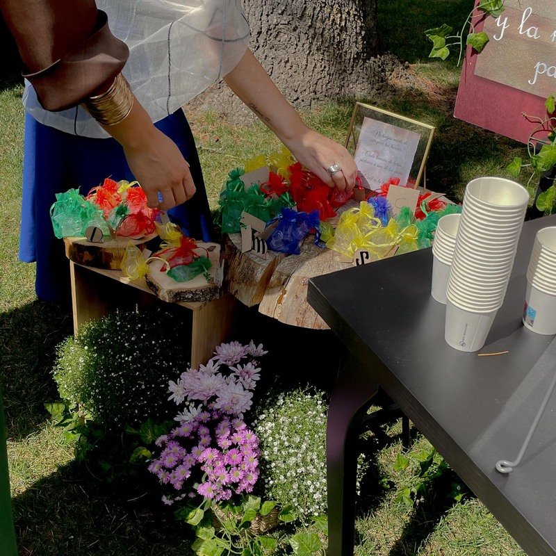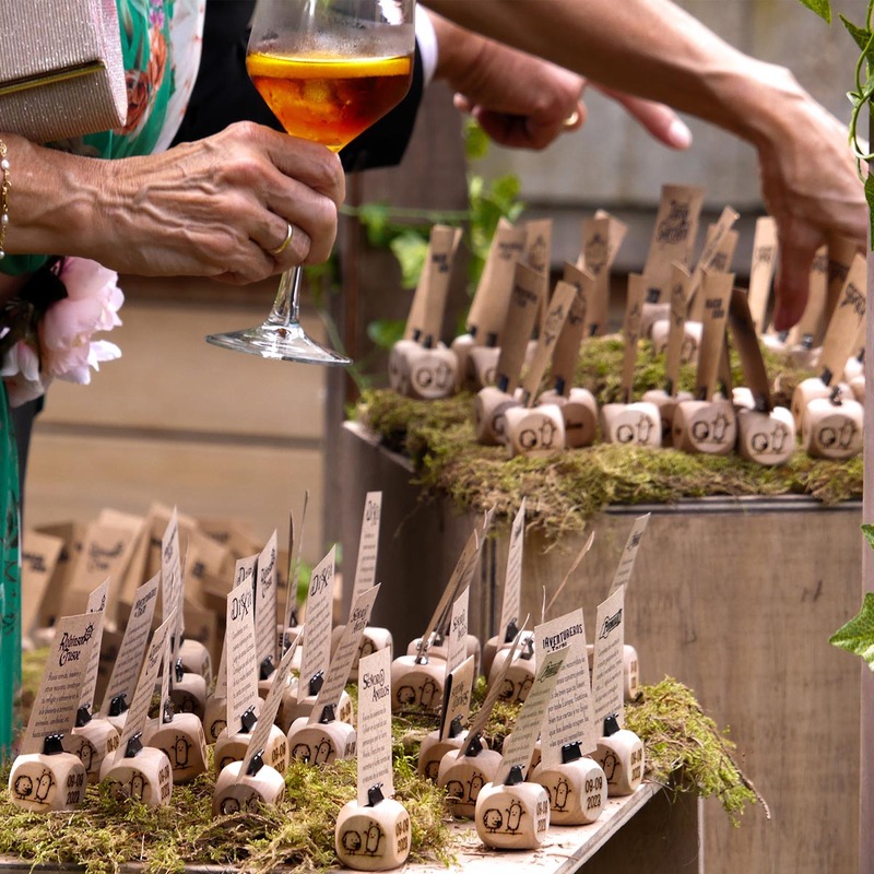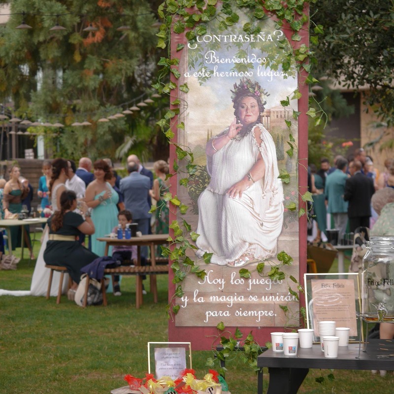La señalética y la ambientación contribuyeron a crear un recorrido visual y narrativo, lleno de detalles cuidados que unificaban los diferentes universos temáticos presentes en la boda. Elementos como el Candy bar inspirado en el mundo de Harry Potter aportaron un toque mágico, reforzando la atmósfera personalizada y emocional del evento.