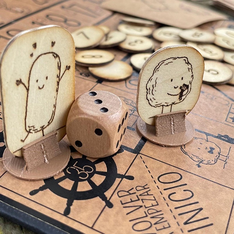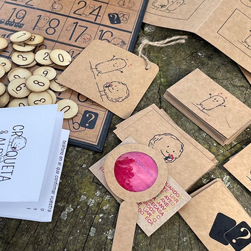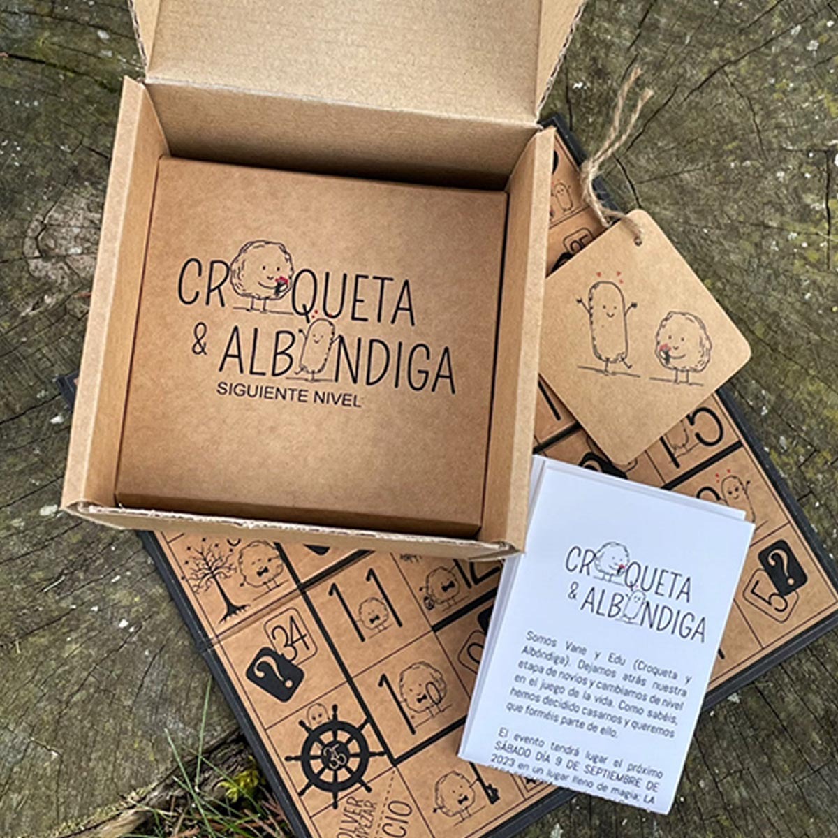Diseñé una invitación en formato de juego de mesa personalizado, que rinde homenaje a un recuerdo familiar muy especial y que invita a los asistentes a participar activamente desde el primer momento. Cada casilla representaba una mesa nombrada según sus juegos favoritos, en las que sus apodos cariñosos —Croqueta y Albóndiga— fueron ilustrados y adaptados como personajes que guiaban a los invitados a lo largo de la celebración.